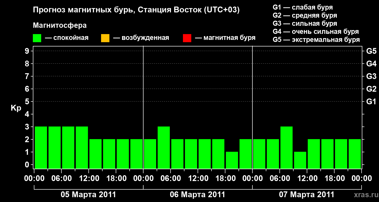 Прогноз магнитных бурь локации Станция Восток — 5 марта 2011 года