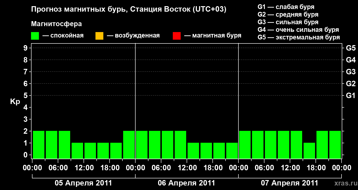 Прогноз магнитных бурь локации Станция Восток — 5 апреля 2011 года
