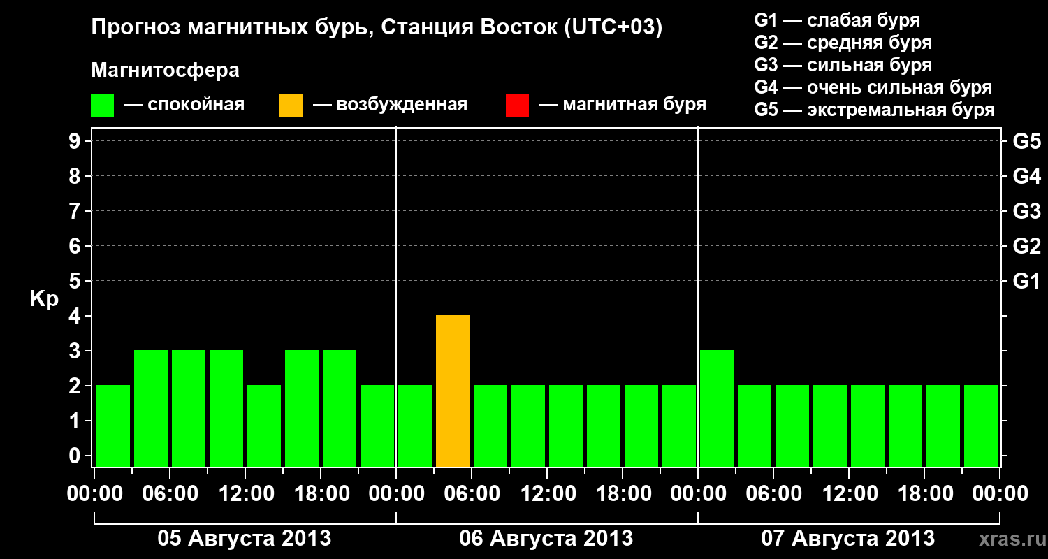 Прогноз магнитных бурь локации Станция Восток — 5 августа 2013 года