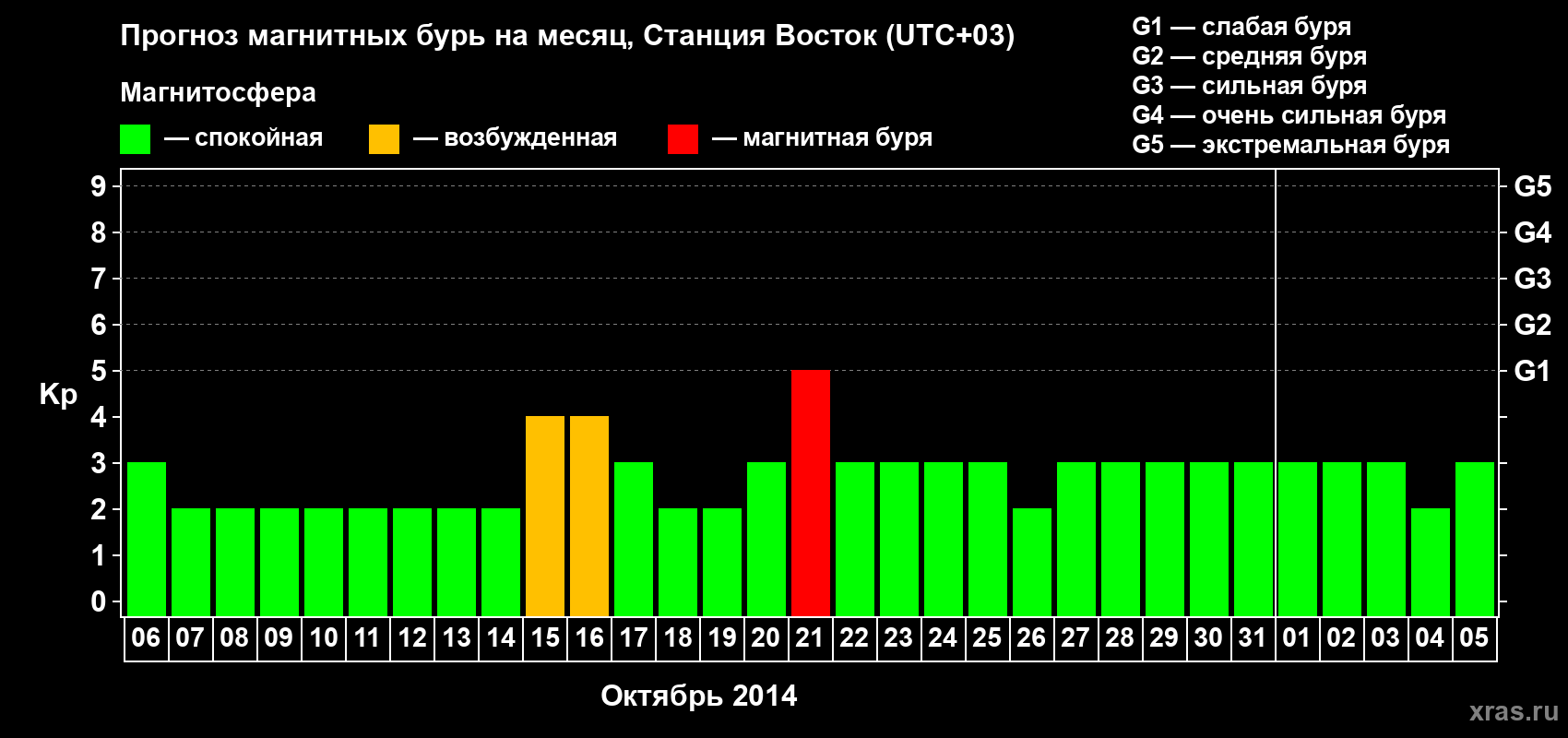 Прогноз магнитных бурь локации Станция Восток — 6 октября 2014 года