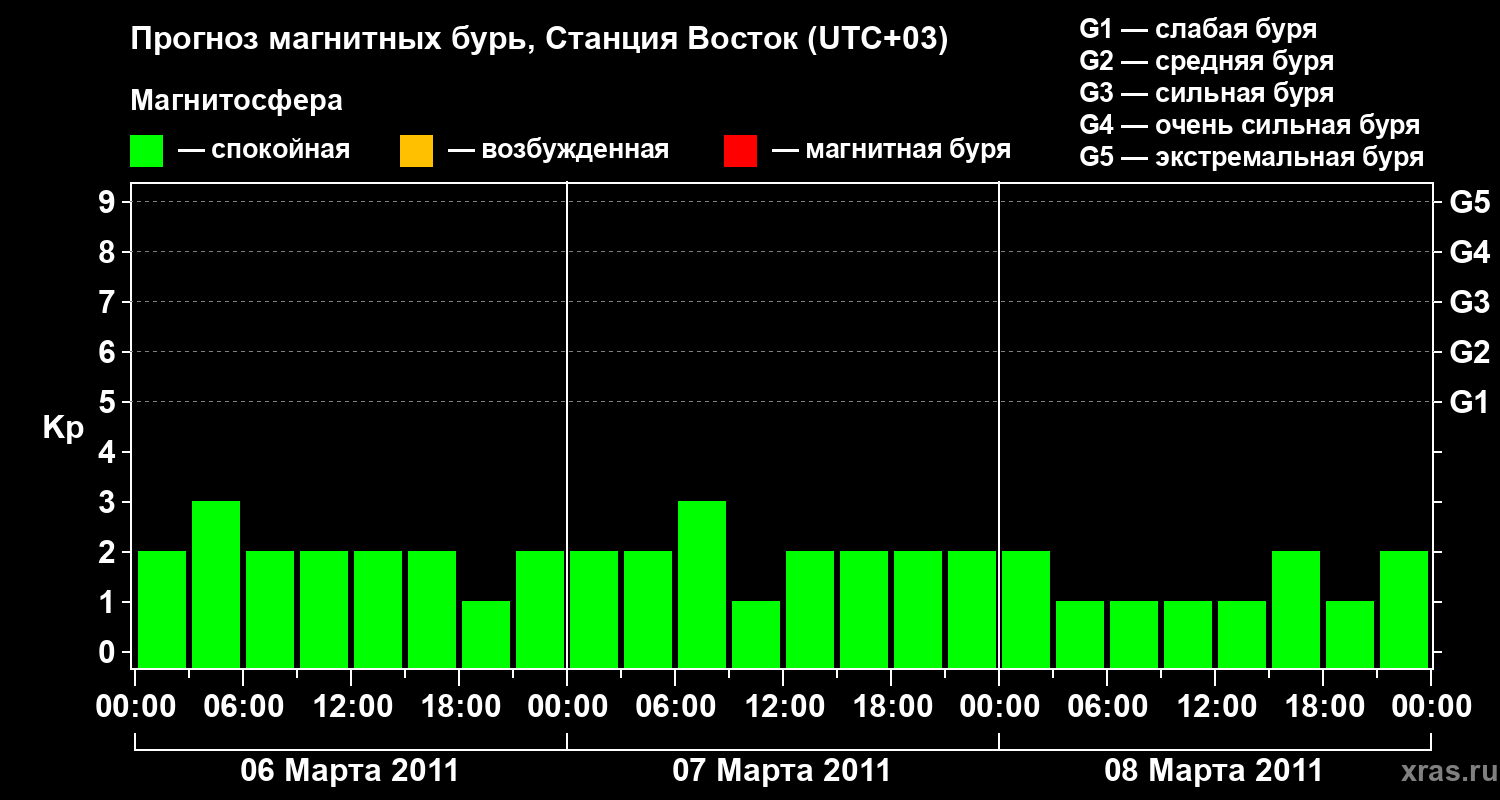 Прогноз магнитных бурь локации Станция Восток — 6 марта 2011 года