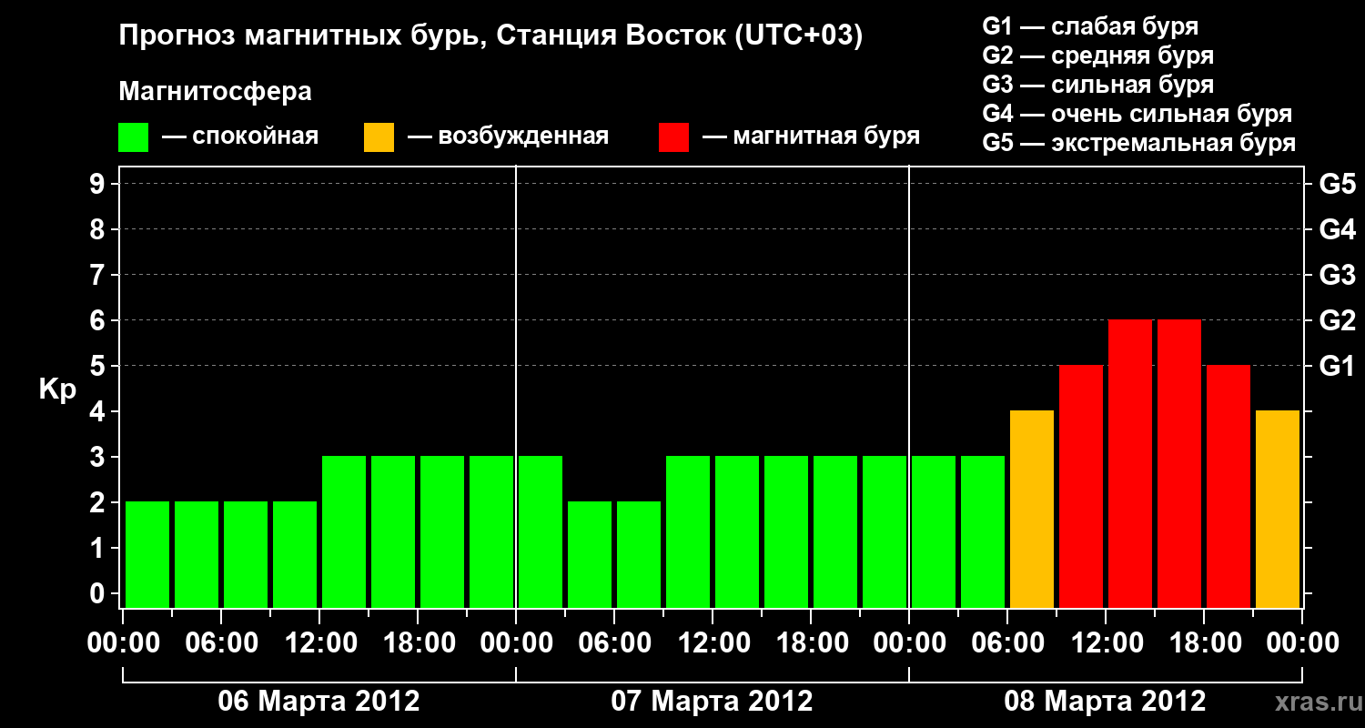 Прогноз магнитных бурь локации Станция Восток — 6 марта 2012 года