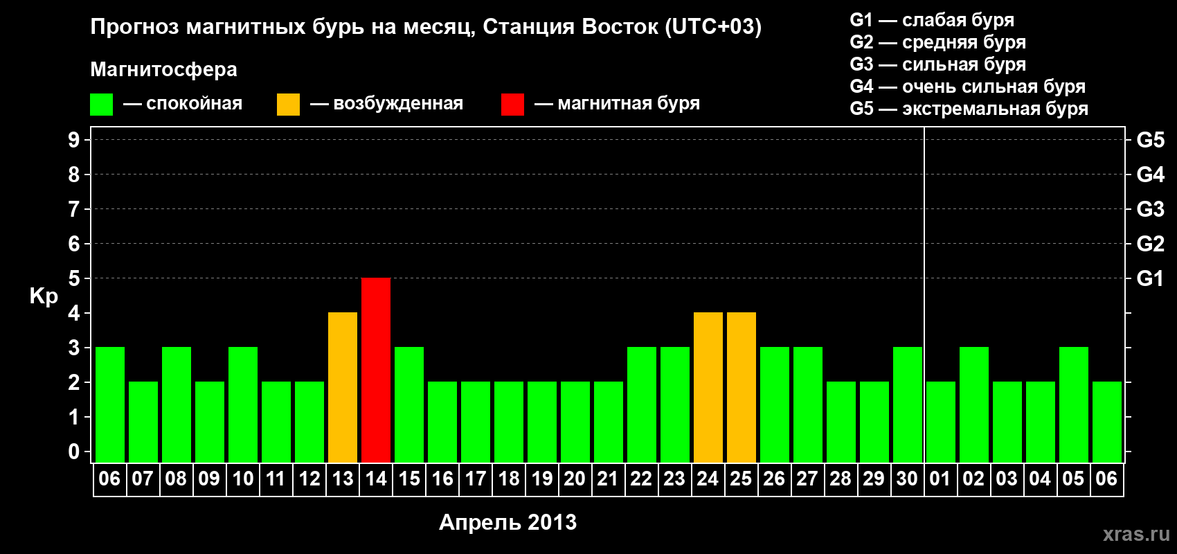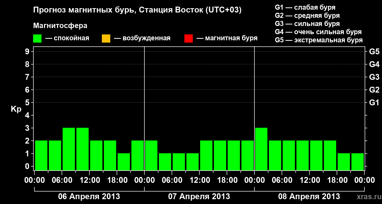 Прогноз магнитных бурь локации Станция Восток — 6 апреля 2013 года