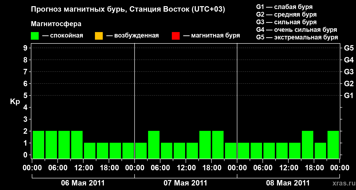 Прогноз магнитных бурь локации Станция Восток — 6 мая 2011 года