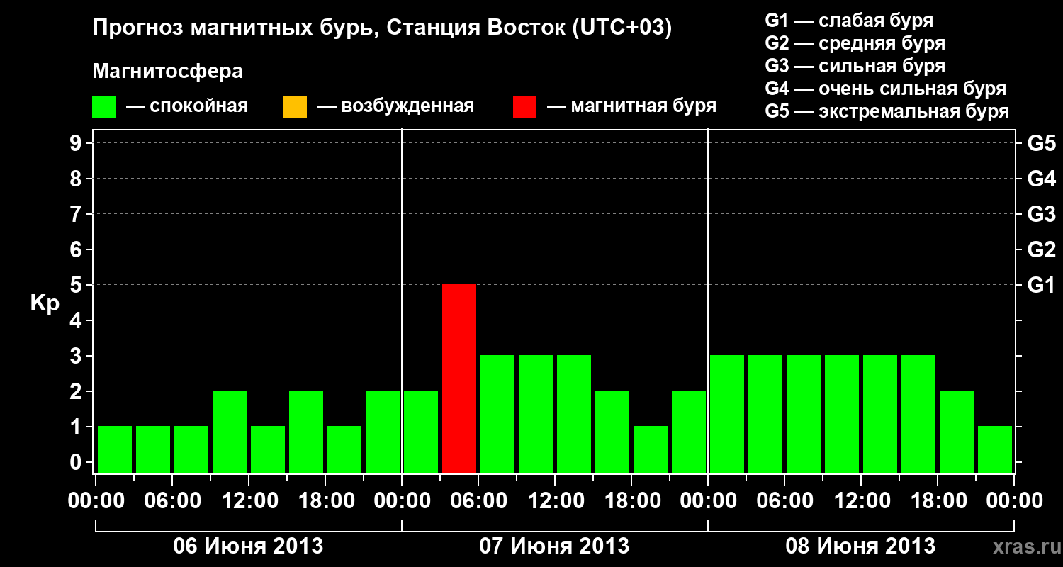 Прогноз магнитных бурь локации Станция Восток — 6 июня 2013 года
