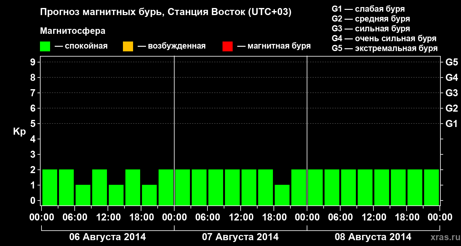 Прогноз магнитных бурь локации Станция Восток — 6 августа 2014 года
