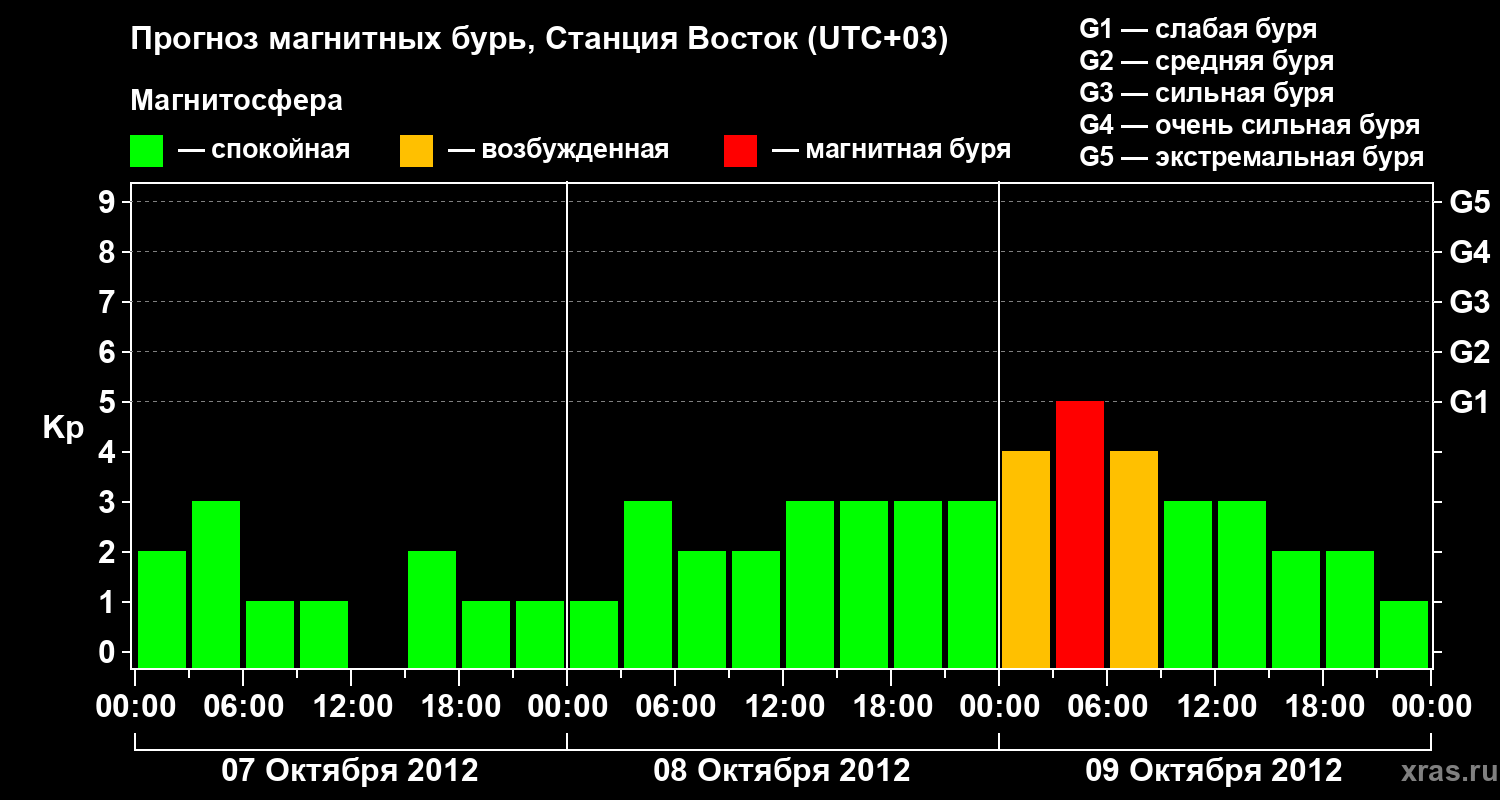 Прогноз магнитных бурь локации Станция Восток — 7 октября 2012 года