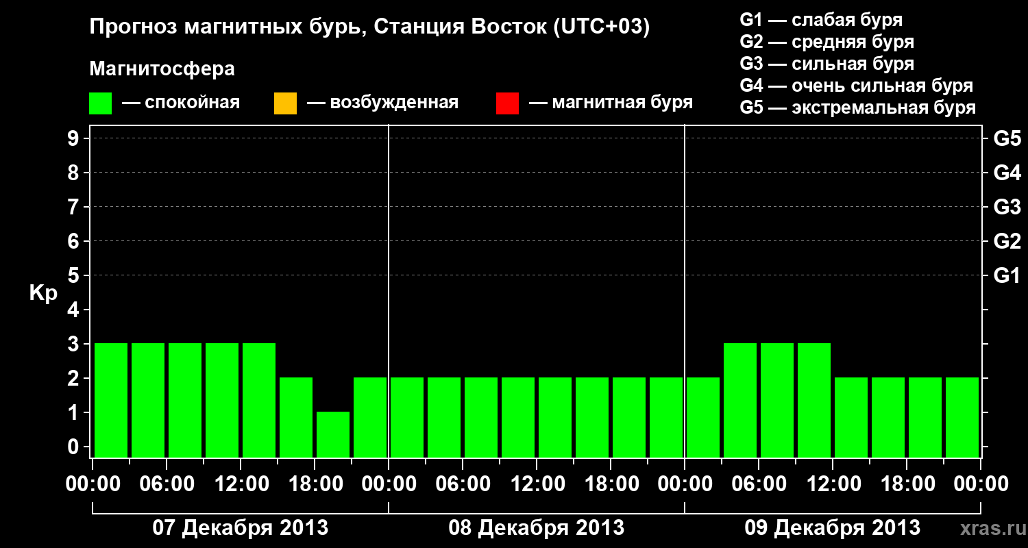 Прогноз магнитных бурь локации Станция Восток — 7 декабря 2013 года