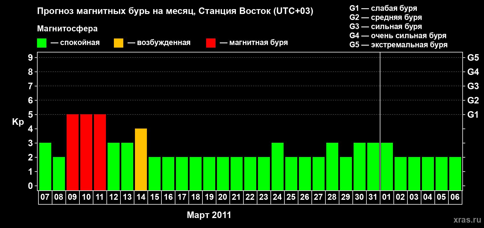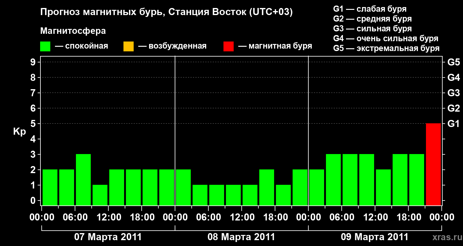 Прогноз магнитных бурь локации Станция Восток — 7 марта 2011 года