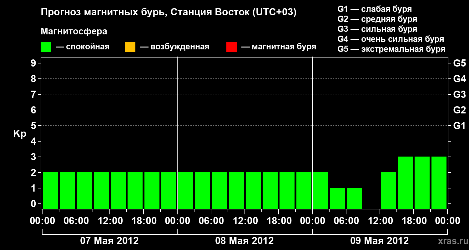 Прогноз магнитных бурь локации Станция Восток — 7 мая 2012 года