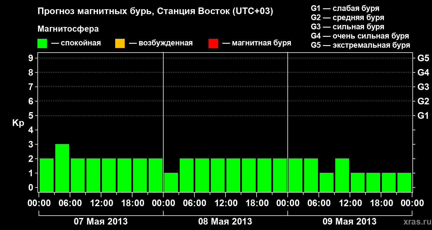 Прогноз магнитных бурь локации Станция Восток — 7 мая 2013 года
