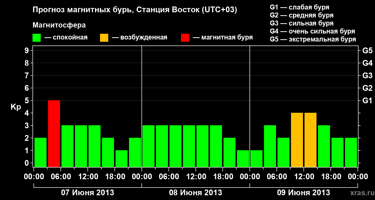 Прогноз магнитных бурь локации Станция Восток — 7 июня 2013 года