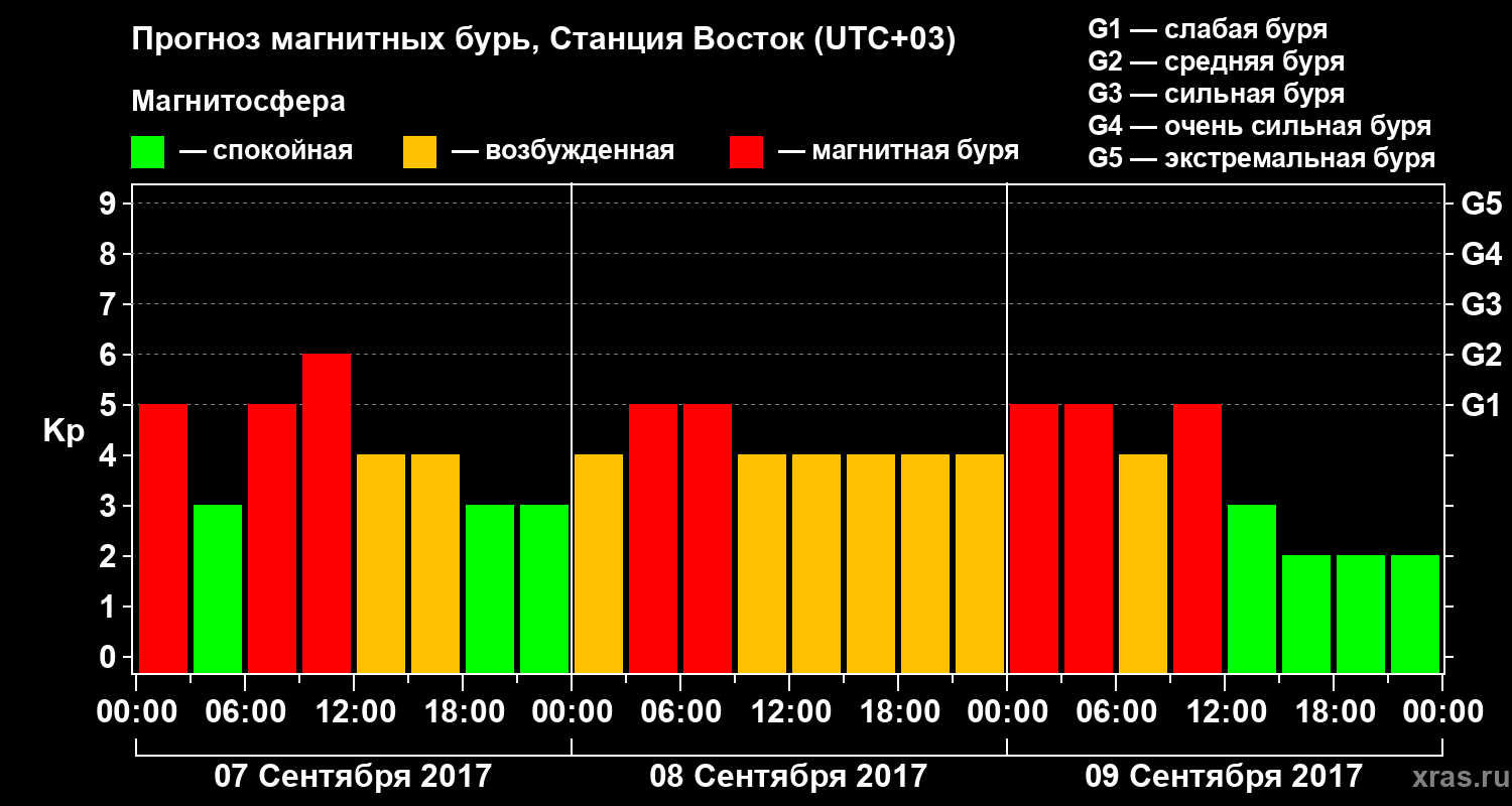 Прогноз магнитных бурь локации Станция Восток — 7 сентября 2017 года
