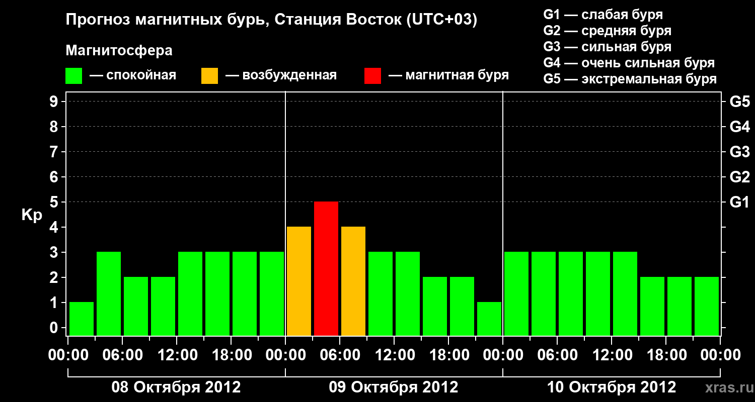 Прогноз магнитных бурь локации Станция Восток — 8 октября 2012 года