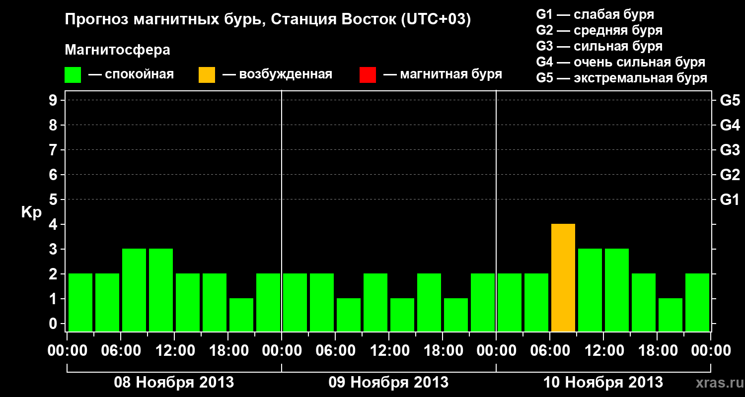 Прогноз магнитных бурь локации Станция Восток — 8 ноября 2013 года