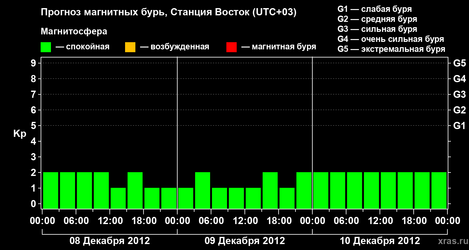 Прогноз магнитных бурь локации Станция Восток — 8 декабря 2012 года