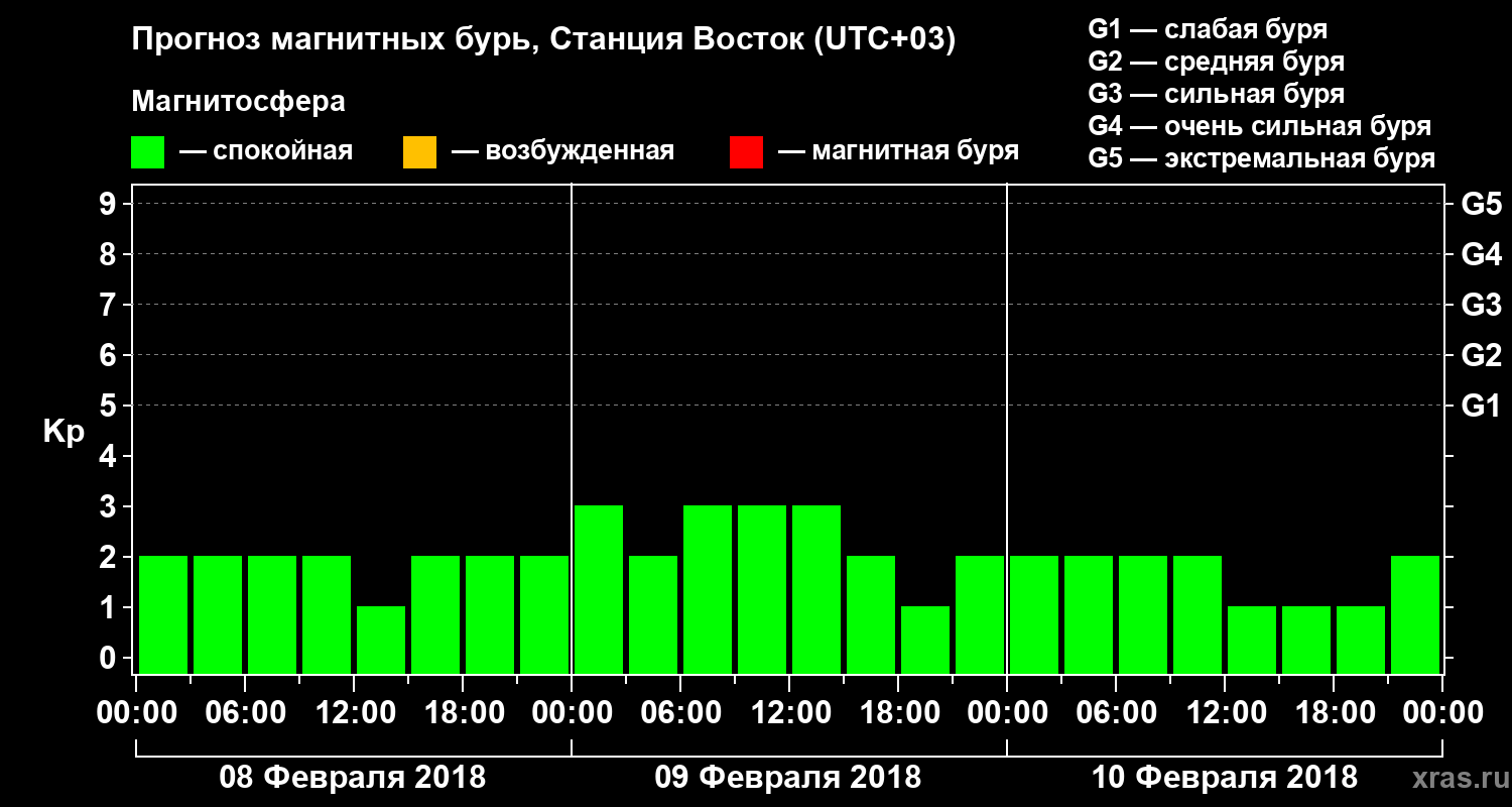 Прогноз магнитных бурь локации Станция Восток — 8 февраля 2018 года