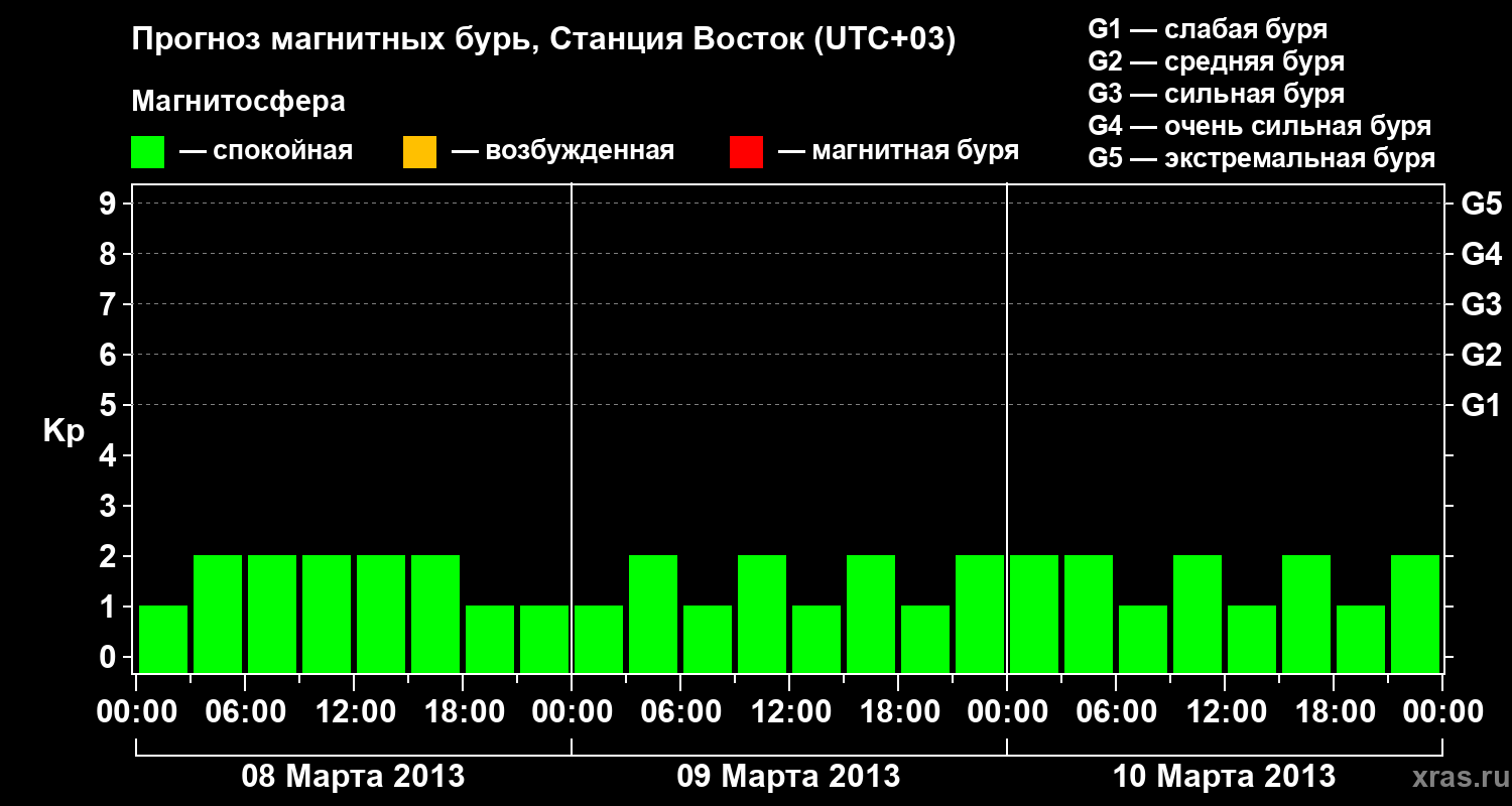 Прогноз магнитных бурь локации Станция Восток — 8 марта 2013 года