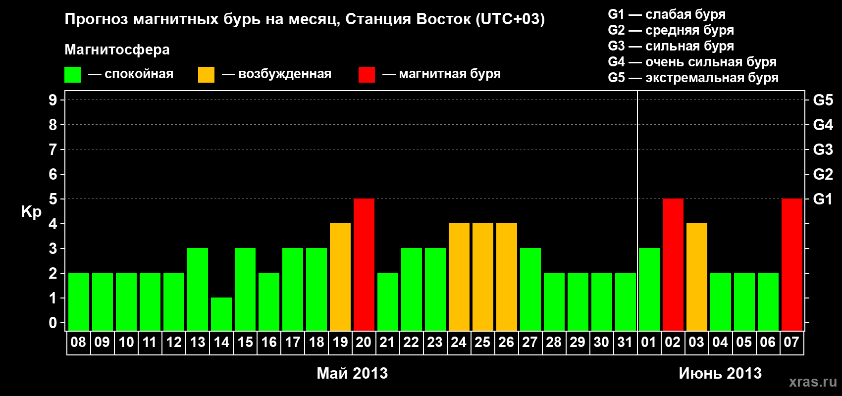 Прогноз магнитных бурь локации Станция Восток — 8 мая 2013 года