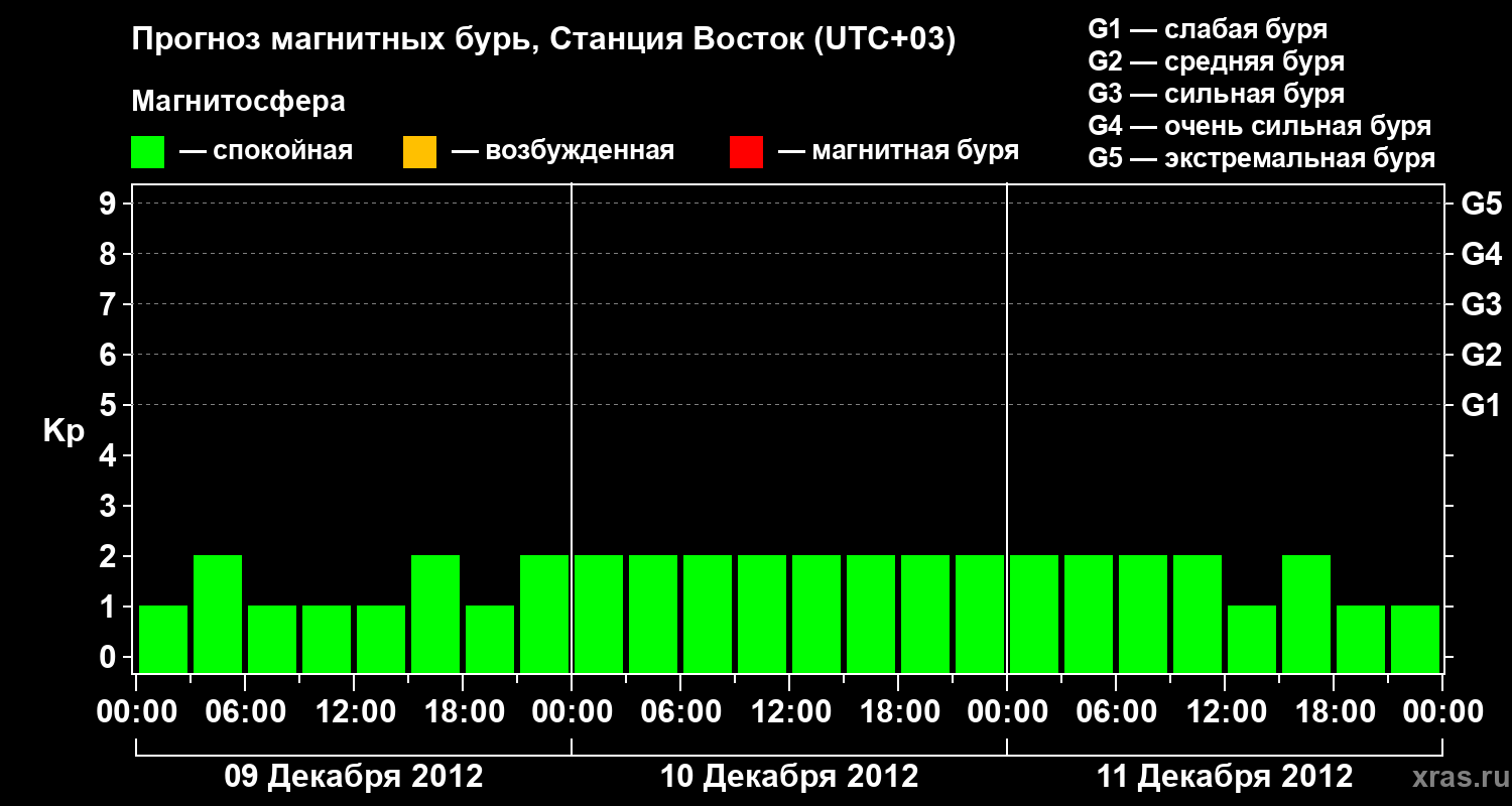 Прогноз магнитных бурь локации Станция Восток — 9 декабря 2012 года
