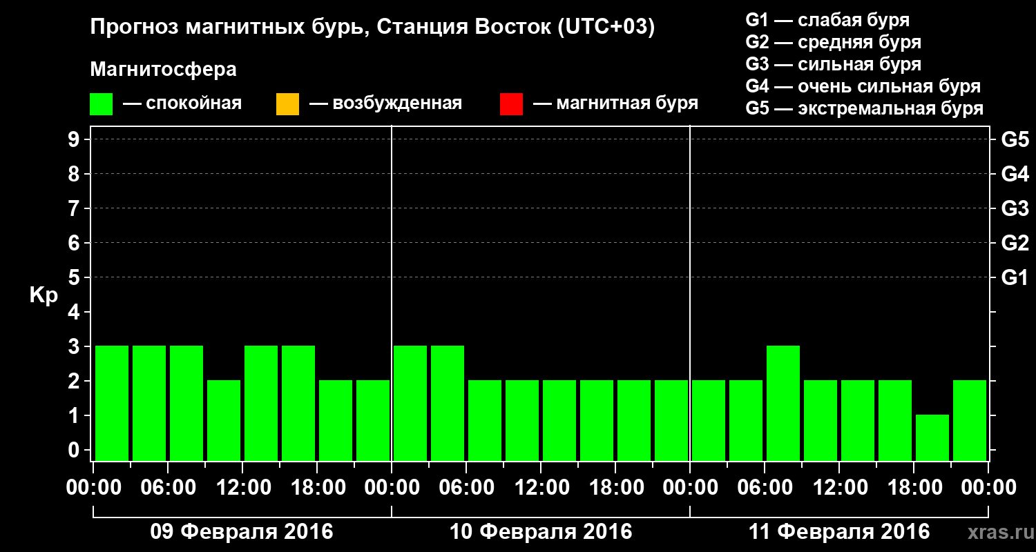 Прогноз магнитных бурь локации Станция Восток — 9 февраля 2016 года