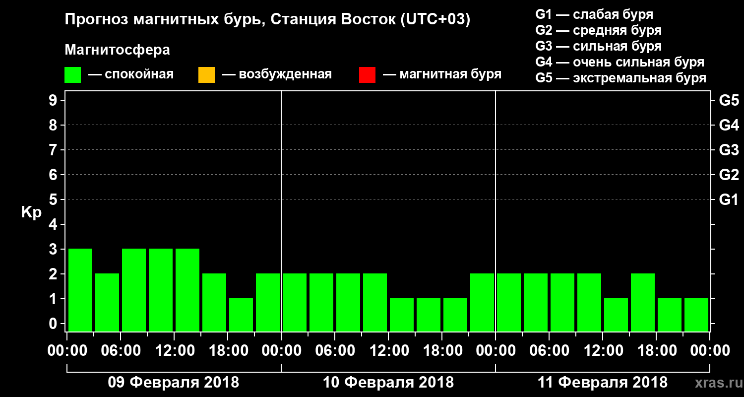 Прогноз магнитных бурь локации Станция Восток — 9 февраля 2018 года