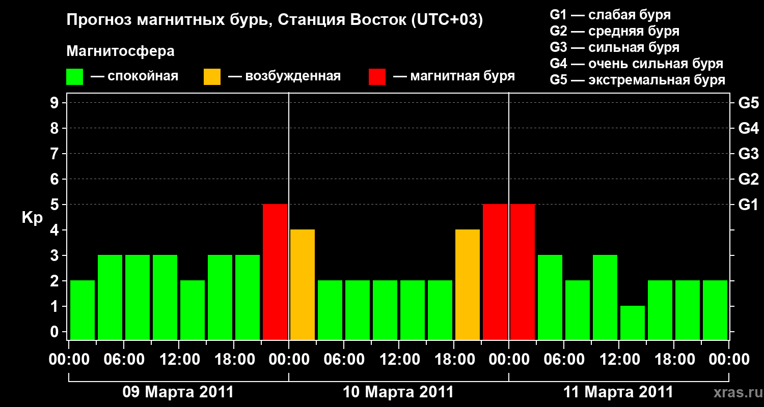 Прогноз магнитных бурь локации Станция Восток — 9 марта 2011 года