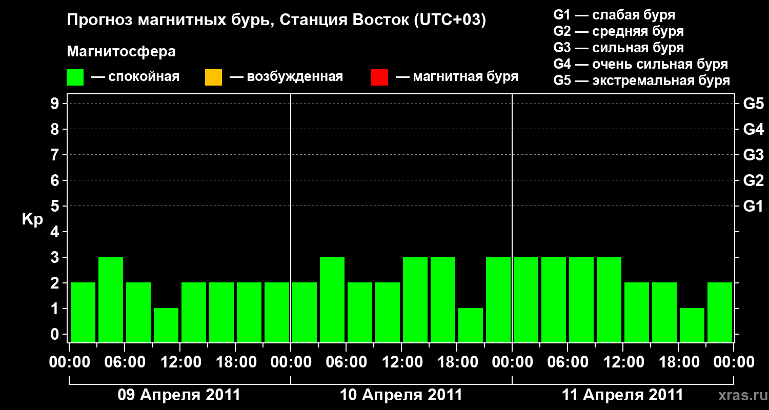 Прогноз магнитных бурь локации Станция Восток — 9 апреля 2011 года