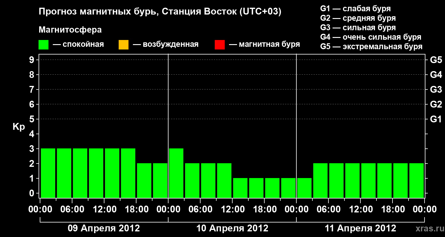 Прогноз магнитных бурь локации Станция Восток — 9 апреля 2012 года