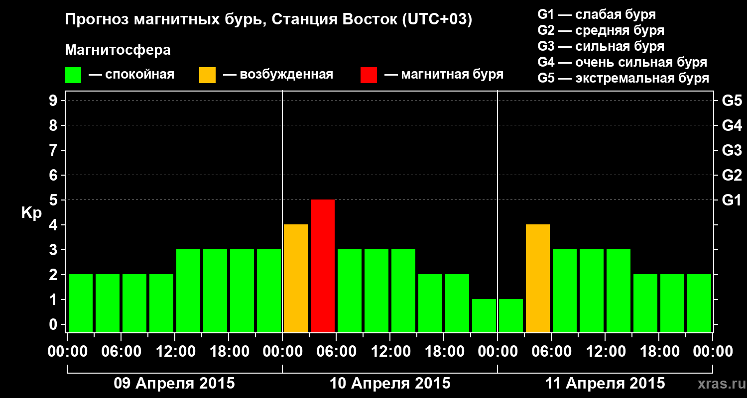 Прогноз магнитных бурь локации Станция Восток — 9 апреля 2015 года