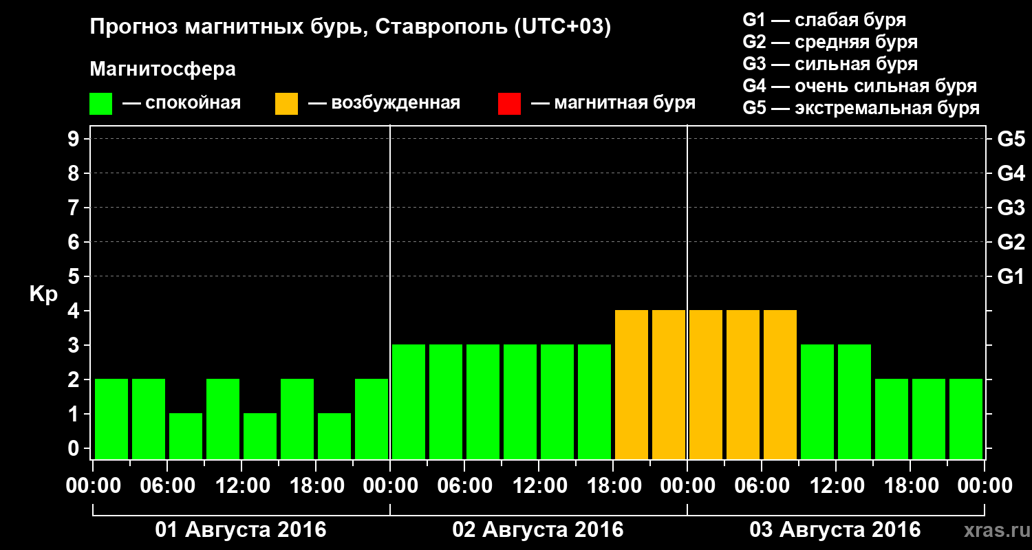 Прогноз магнитных бурь в Ставрополе на 1 августа 2016 года