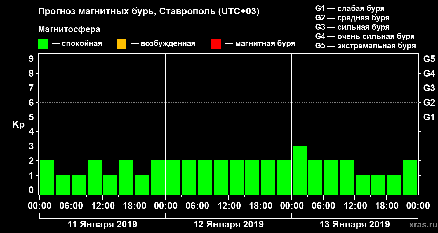 Прогноз магнитных бурь в Ставрополе на 11 января 2019 года