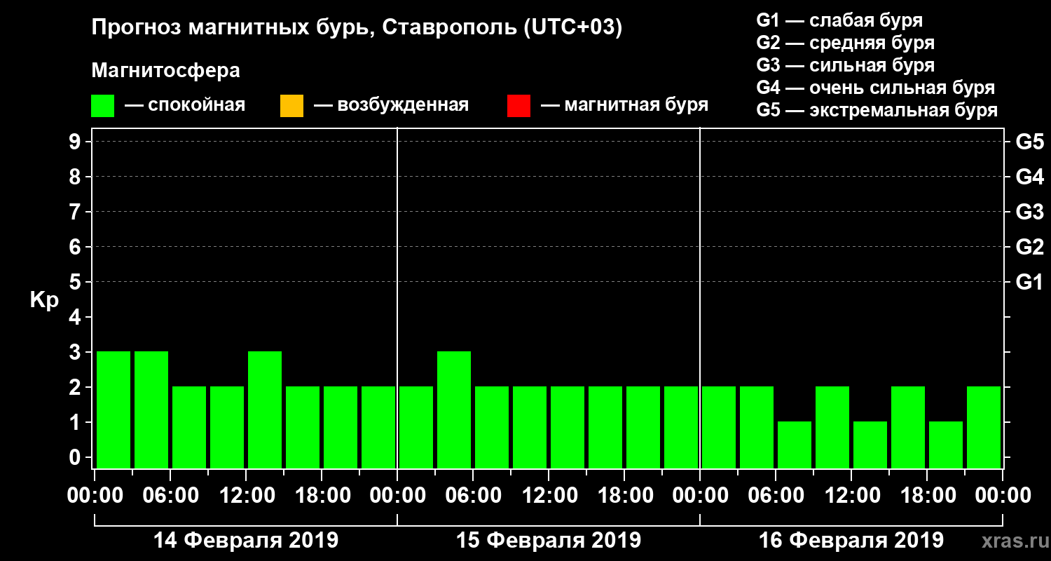 Прогноз магнитных бурь в Ставрополе на 14 февраля 2019 года