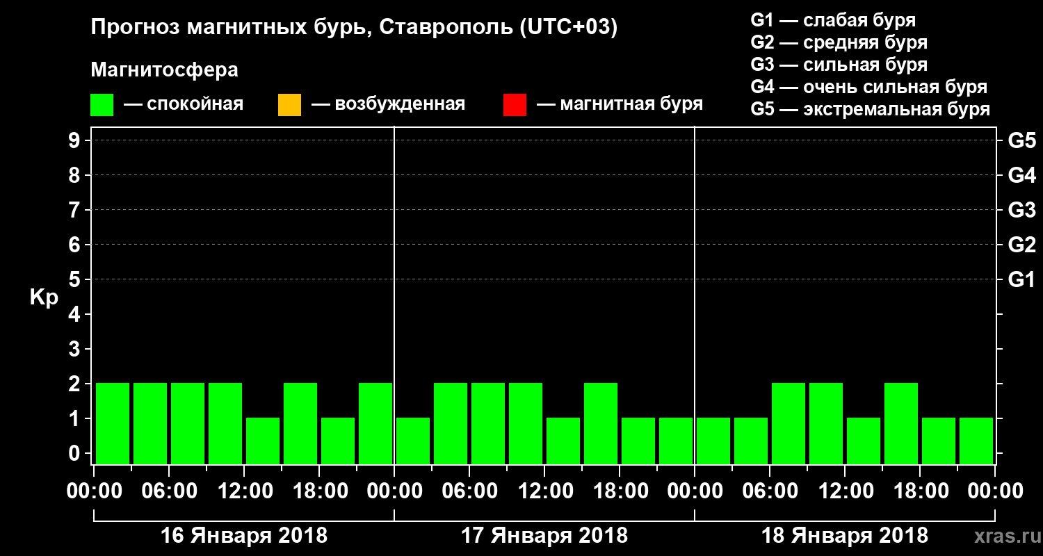 Прогноз магнитных бурь в Ставрополе на 16 января 2018 года