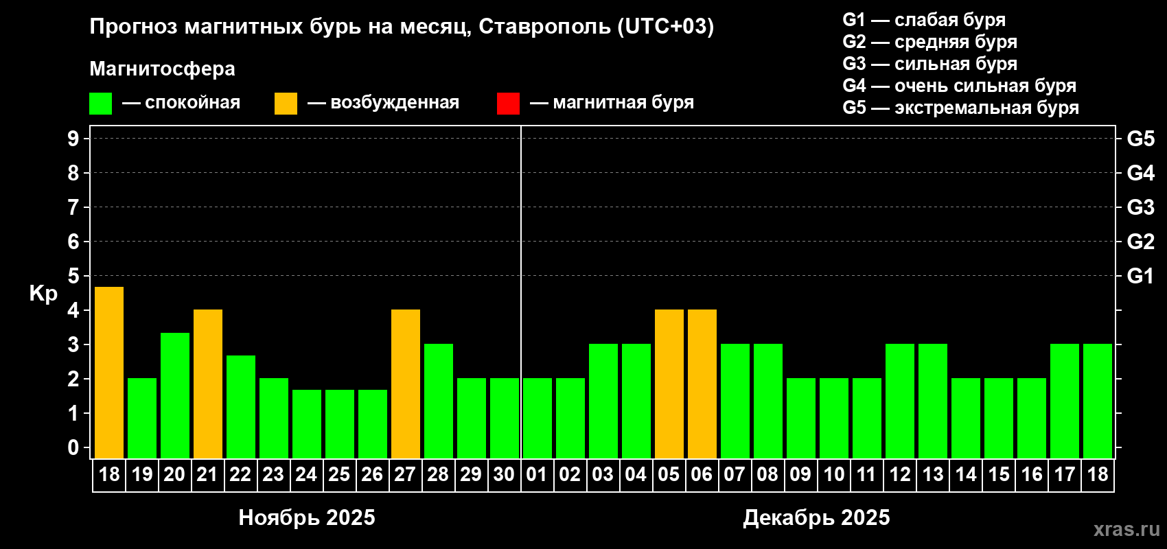 Прогноз магнитных бурь в Ставрополе — 18 ноября 2025 года