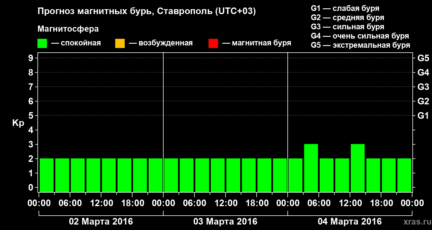 Прогноз магнитных бурь в Ставрополе на 2 марта 2016 года