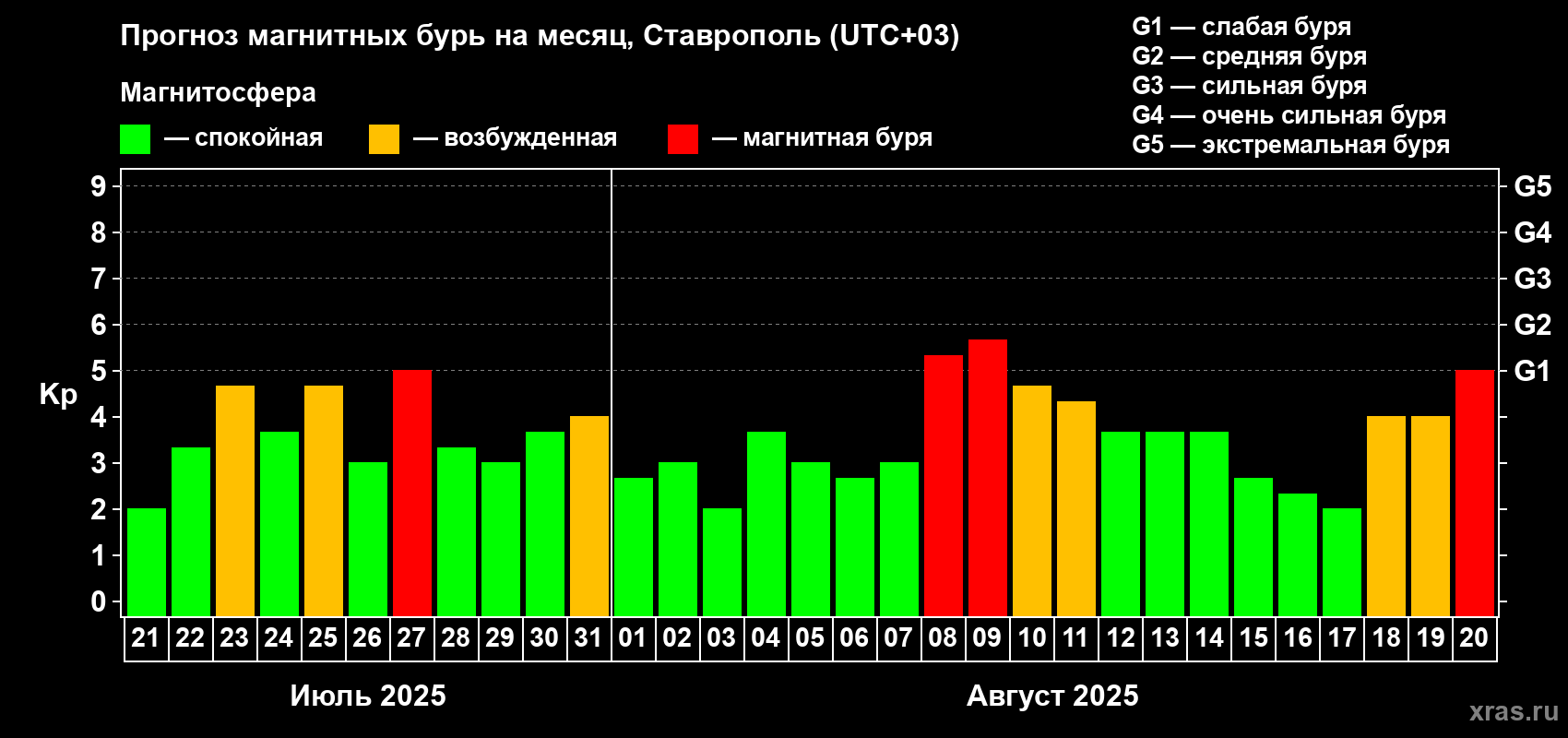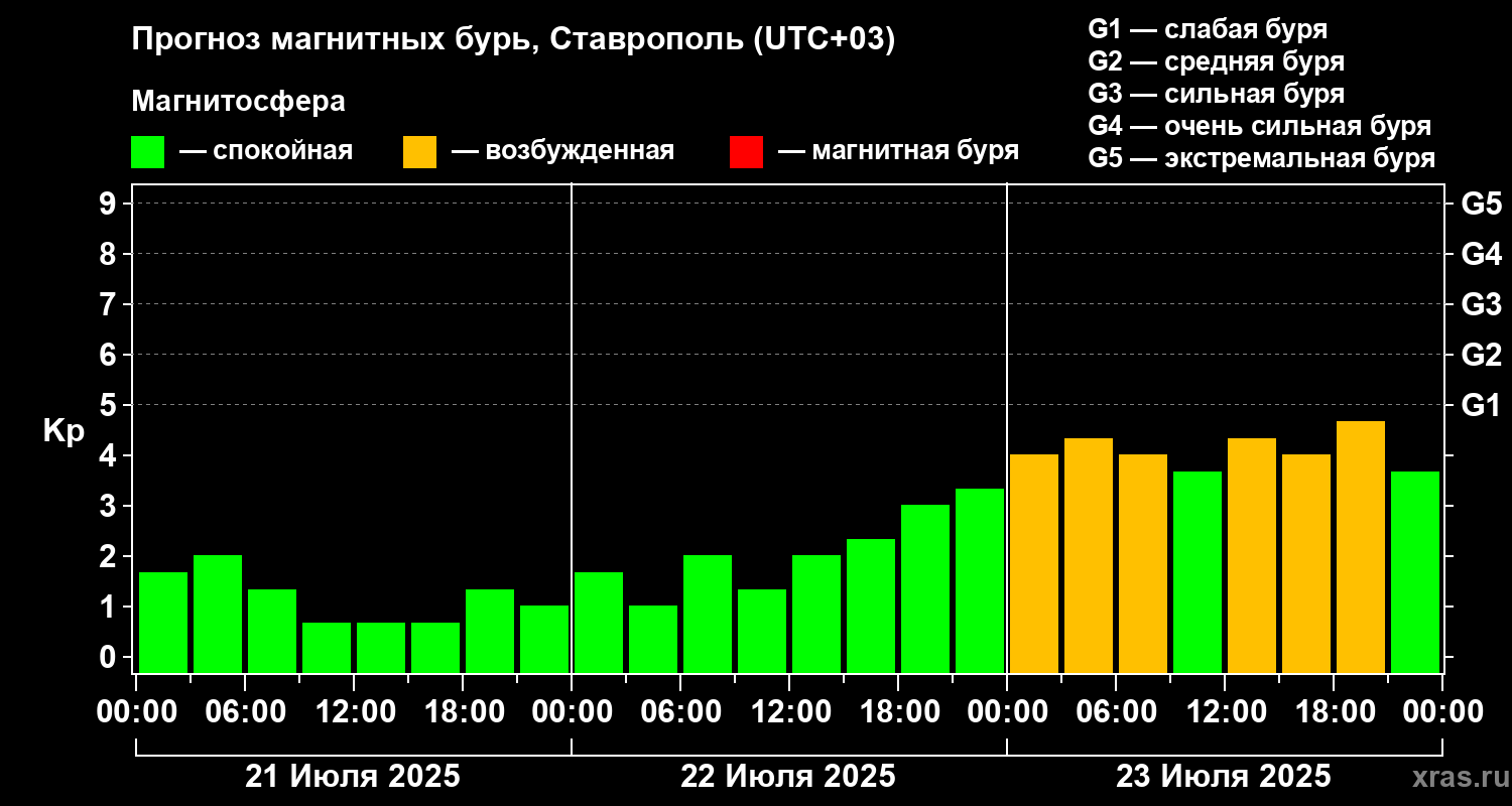 Прогноз магнитных бурь в Ставрополе — 21 июля 2025 года