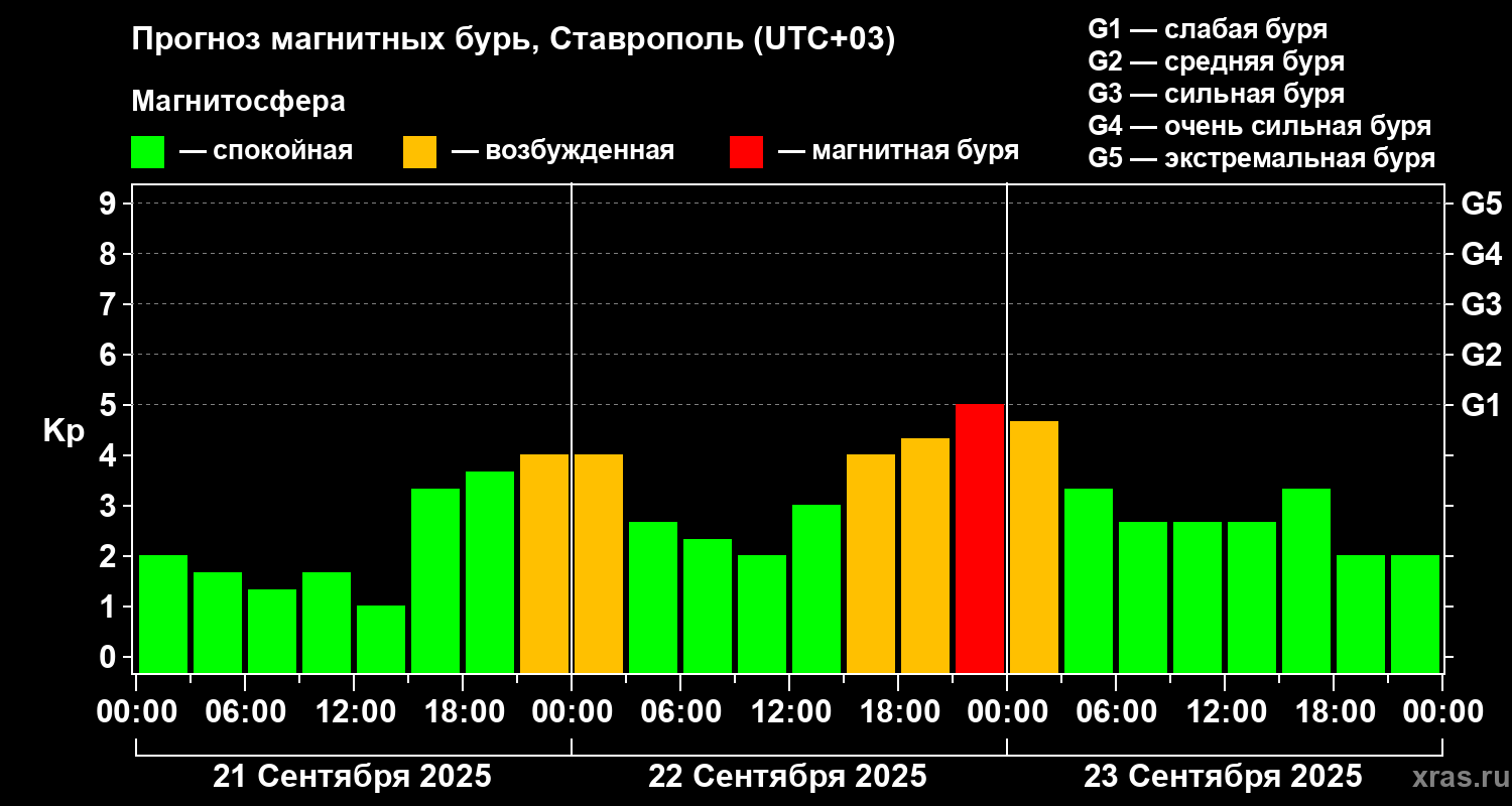 Прогноз магнитных бурь в Ставрополе — 21 сентября 2025 года