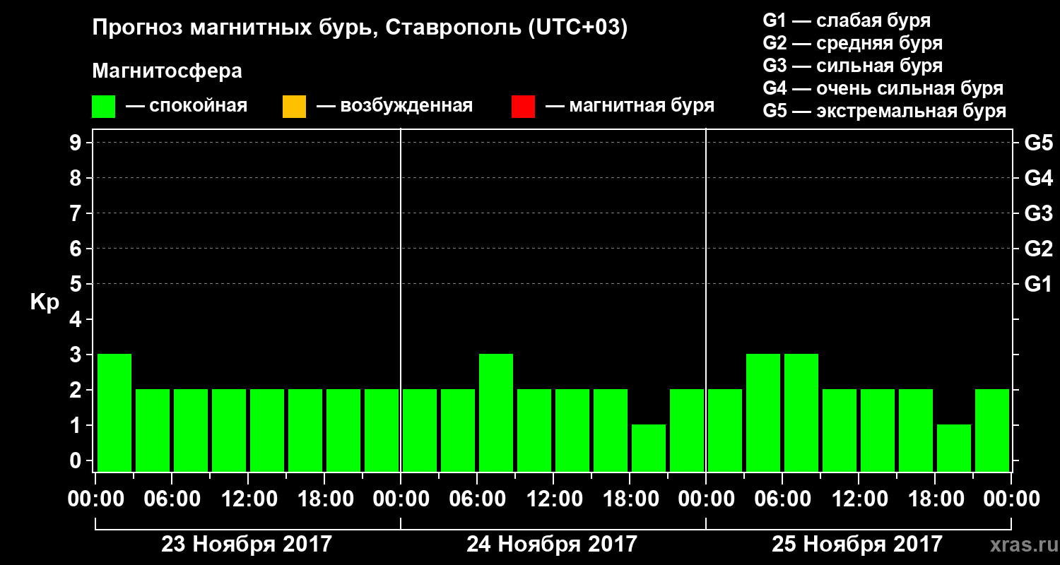 Прогноз магнитных бурь в Ставрополе на 23 ноября 2017 года