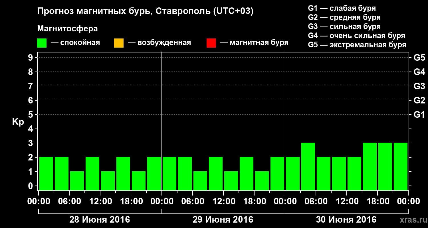 Прогноз магнитных бурь в Ставрополе на 28 июня 2016 года