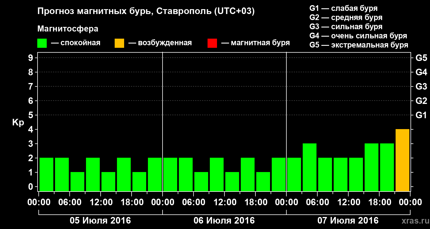 Прогноз магнитных бурь в Ставрополе — 5 июля 2016 года