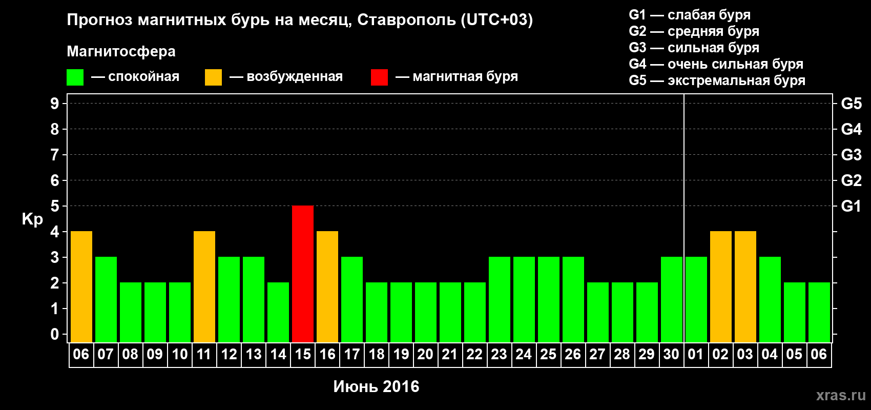 Прогноз магнитных бурь в Ставрополе — 6 июня 2016 года