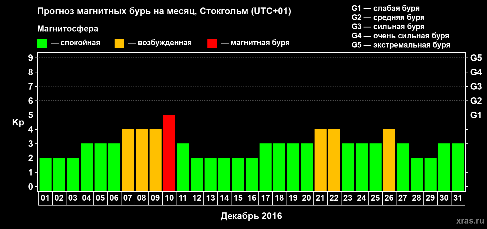 Прогноз магнитных бурь в Стокгольме — 1 декабря 2016 года