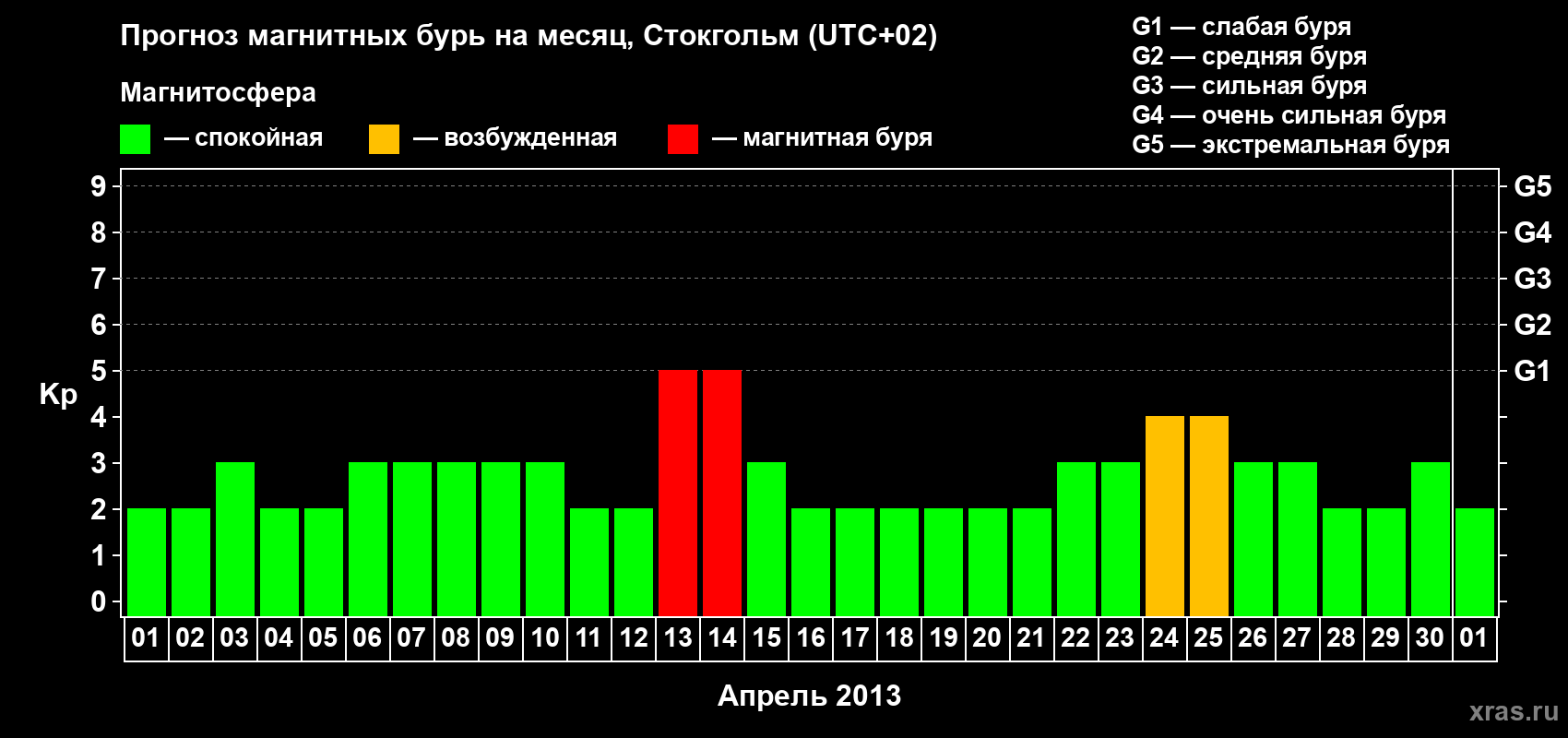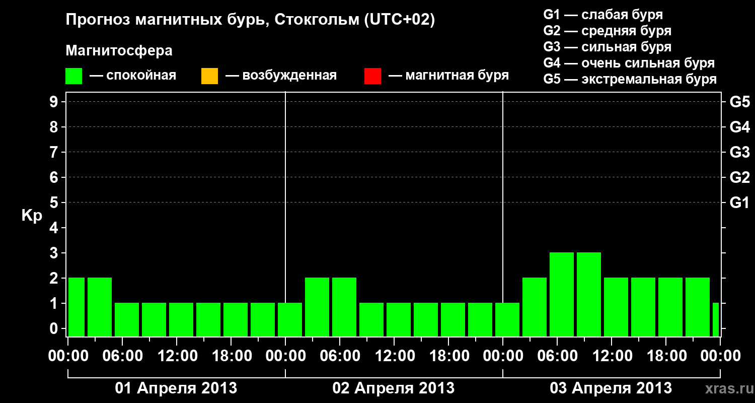 Прогноз магнитных бурь в Стокгольме — 1 апреля 2013 года