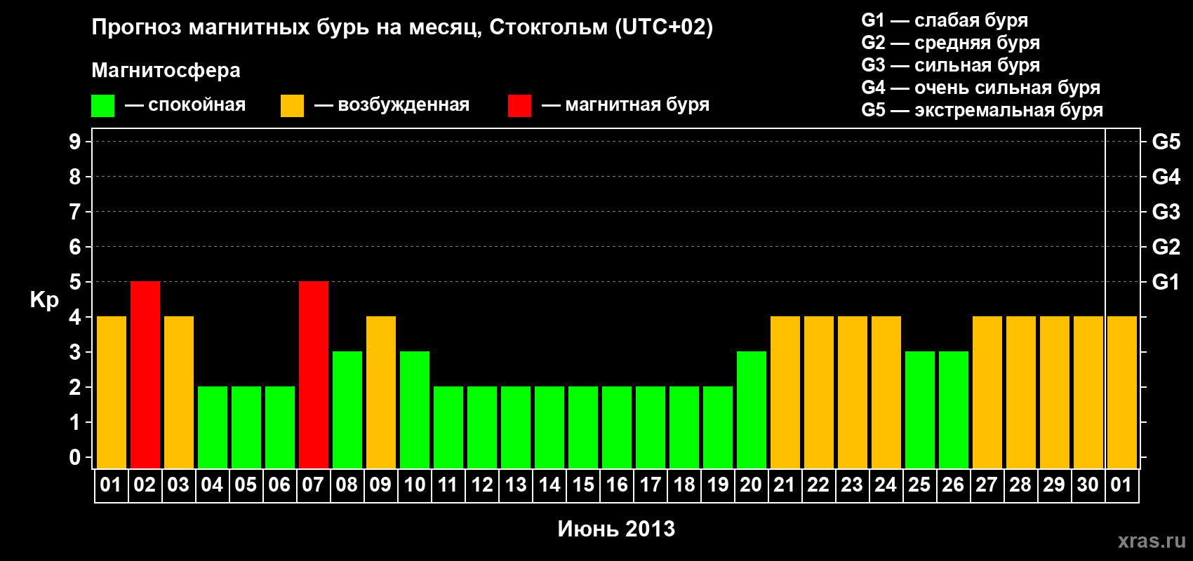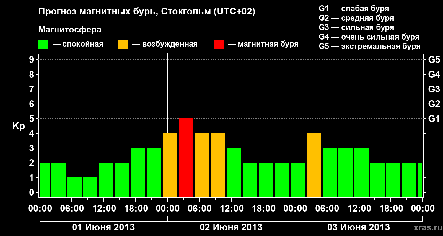 Прогноз магнитных бурь в Стокгольме — 1 июня 2013 года