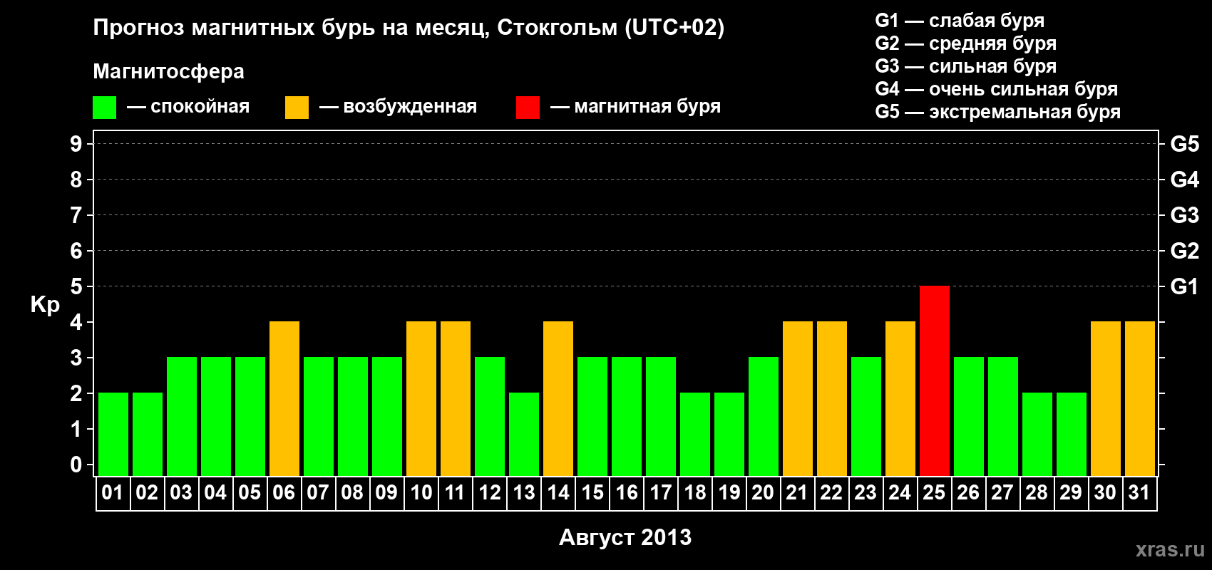 Прогноз магнитных бурь в Стокгольме — 1 августа 2013 года