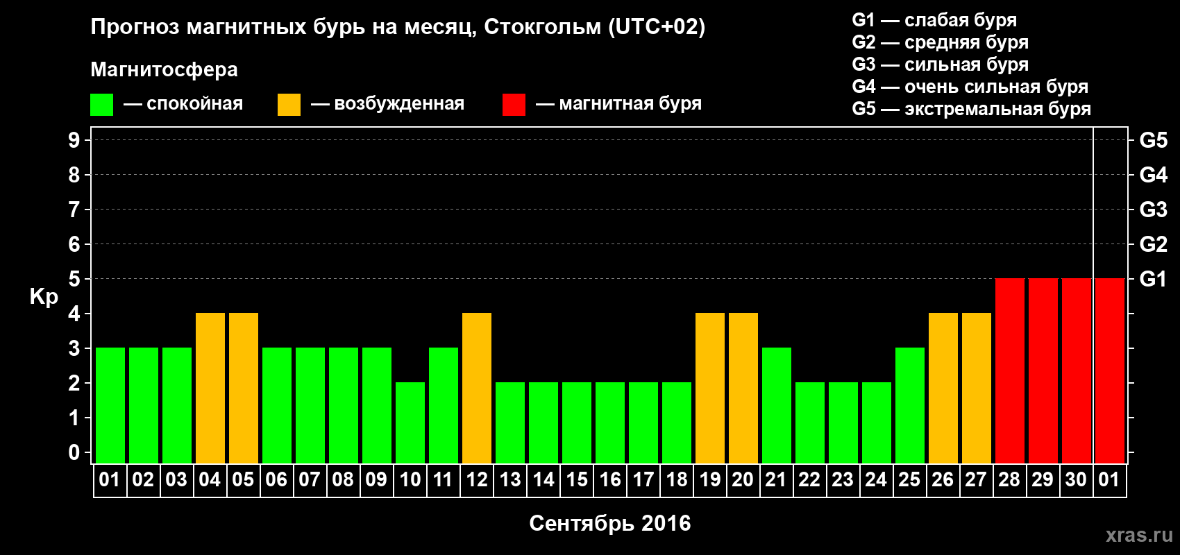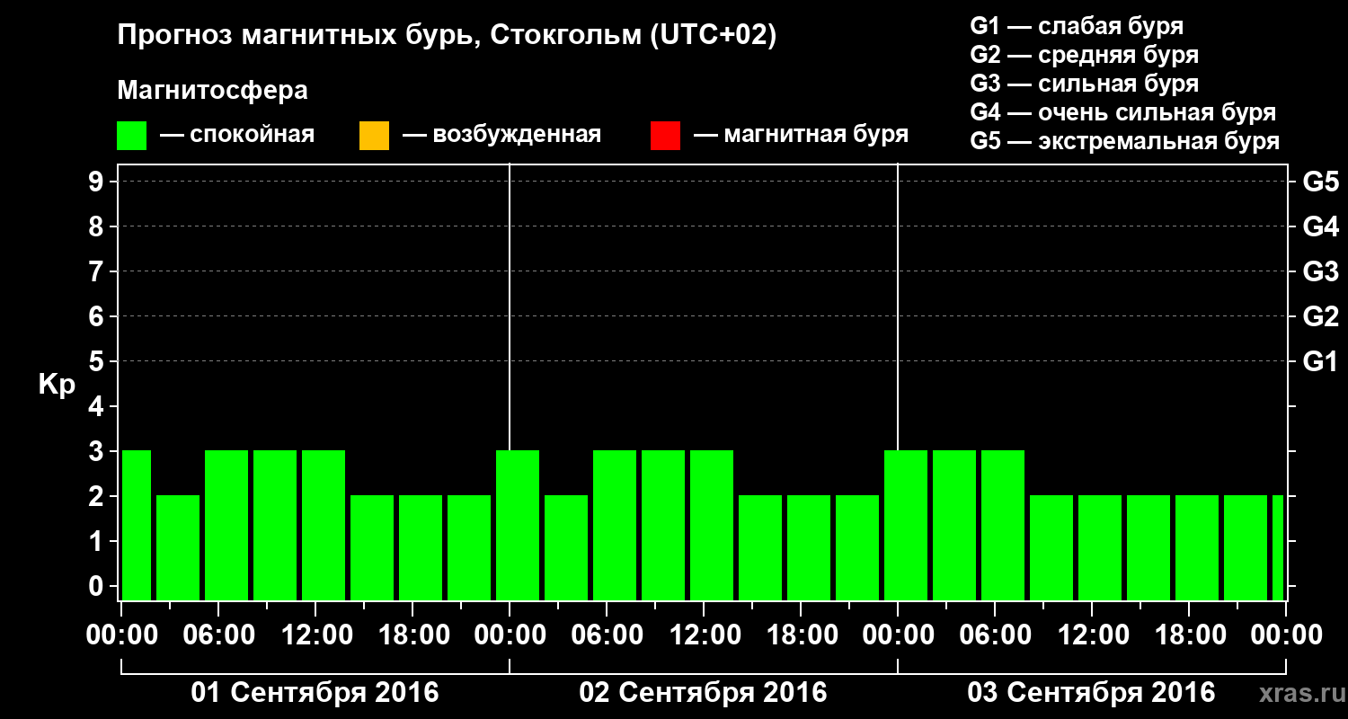 Прогноз магнитных бурь в Стокгольме — 1 сентября 2016 года