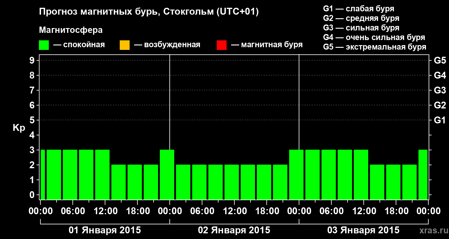 Прогноз магнитных бурь в Стокгольме — 1 января 2015 года