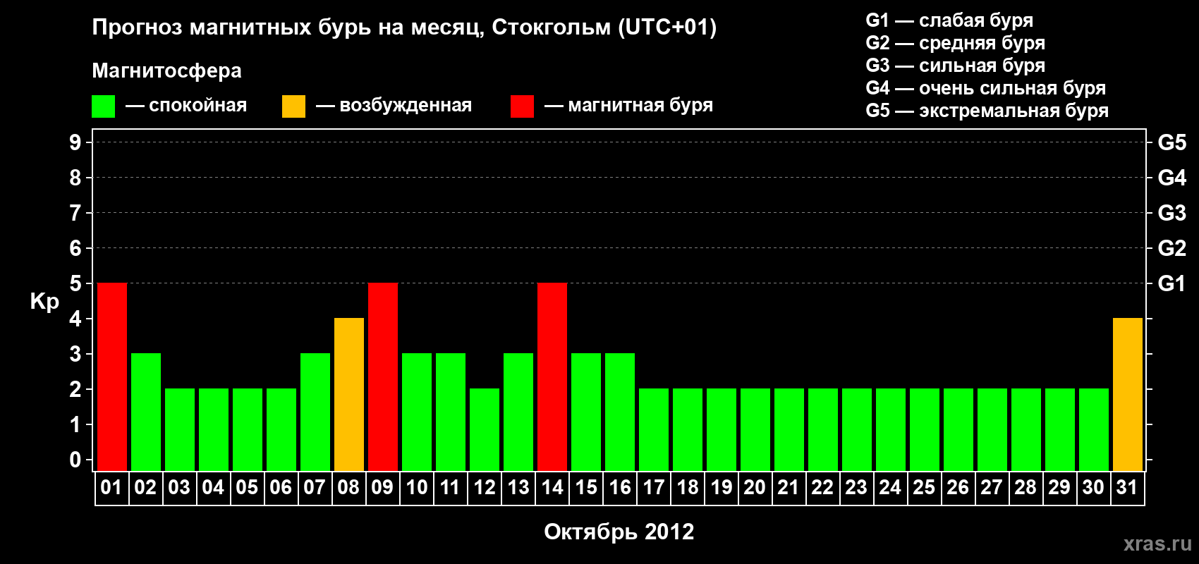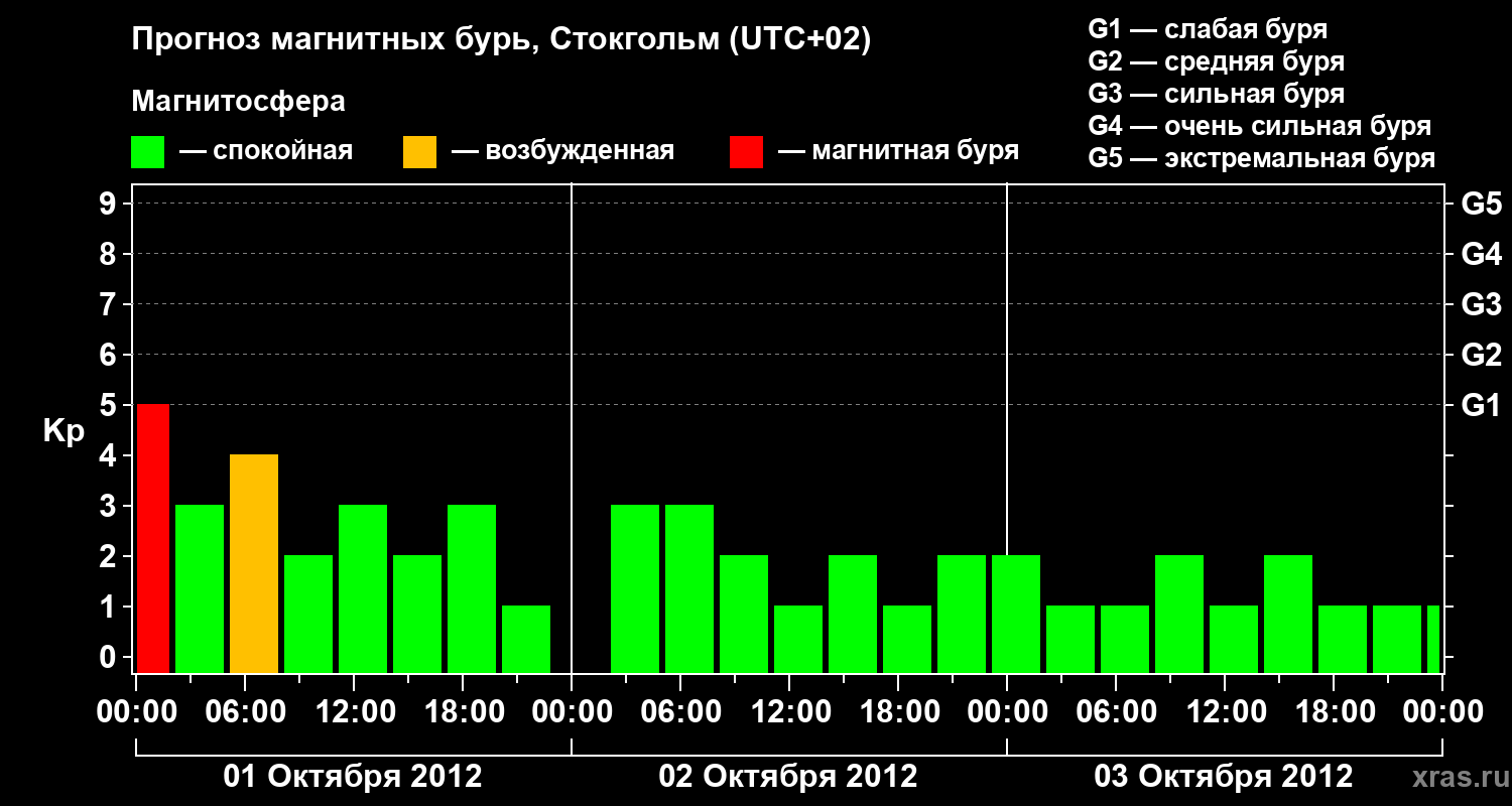 Прогноз магнитных бурь в Стокгольме — 1 октября 2012 года