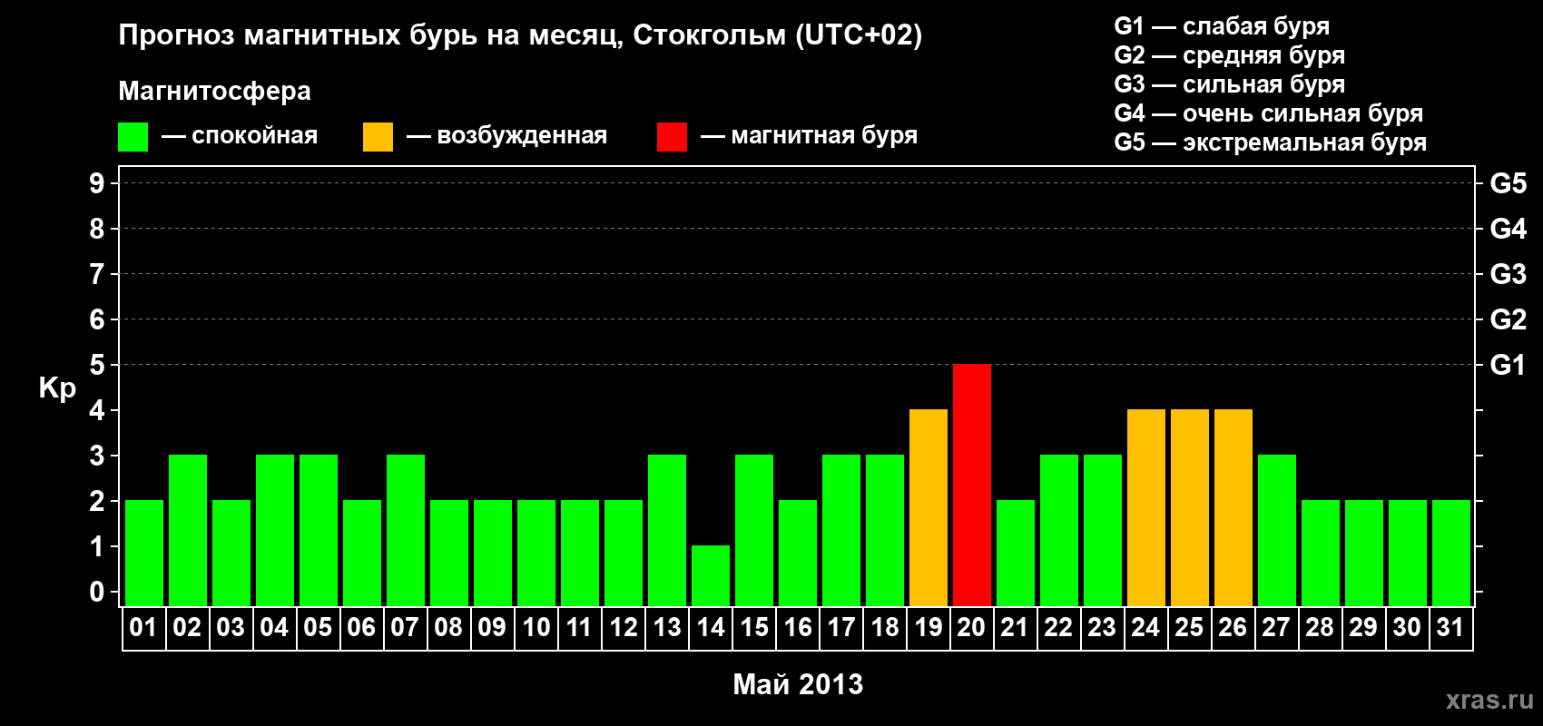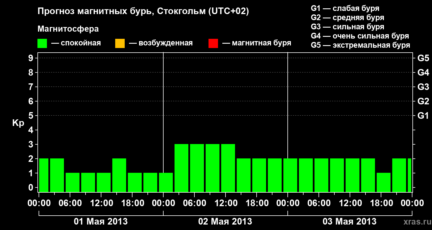 Прогноз магнитных бурь в Стокгольме — 1 мая 2013 года